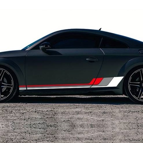 Set 2 stickere autoadezive Tuning, model „Racing Stripes V2”, dimensiune 180 x 16,5 cm, culoare Alb + Gri + Rosu