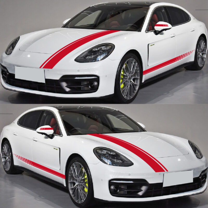 Set 5 stickere autoadezive Tuning, model „Racing Stripes V1”, dimensiune 190 cm, culoare Rosie